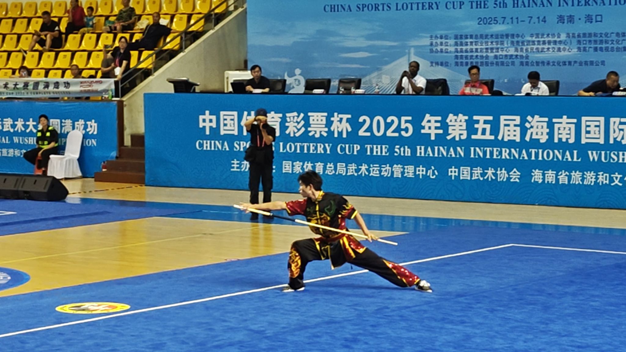 2025年7月11日至15日,由国家体育总局主办的“中国体育彩票杯”2025年第五届海南国际武术大赛在海口市体育馆隆重举行。来自全球20多个国家和地区以及国内20多个省市的1600余名武术高手齐聚海南,共襄这一国际武术盛会。