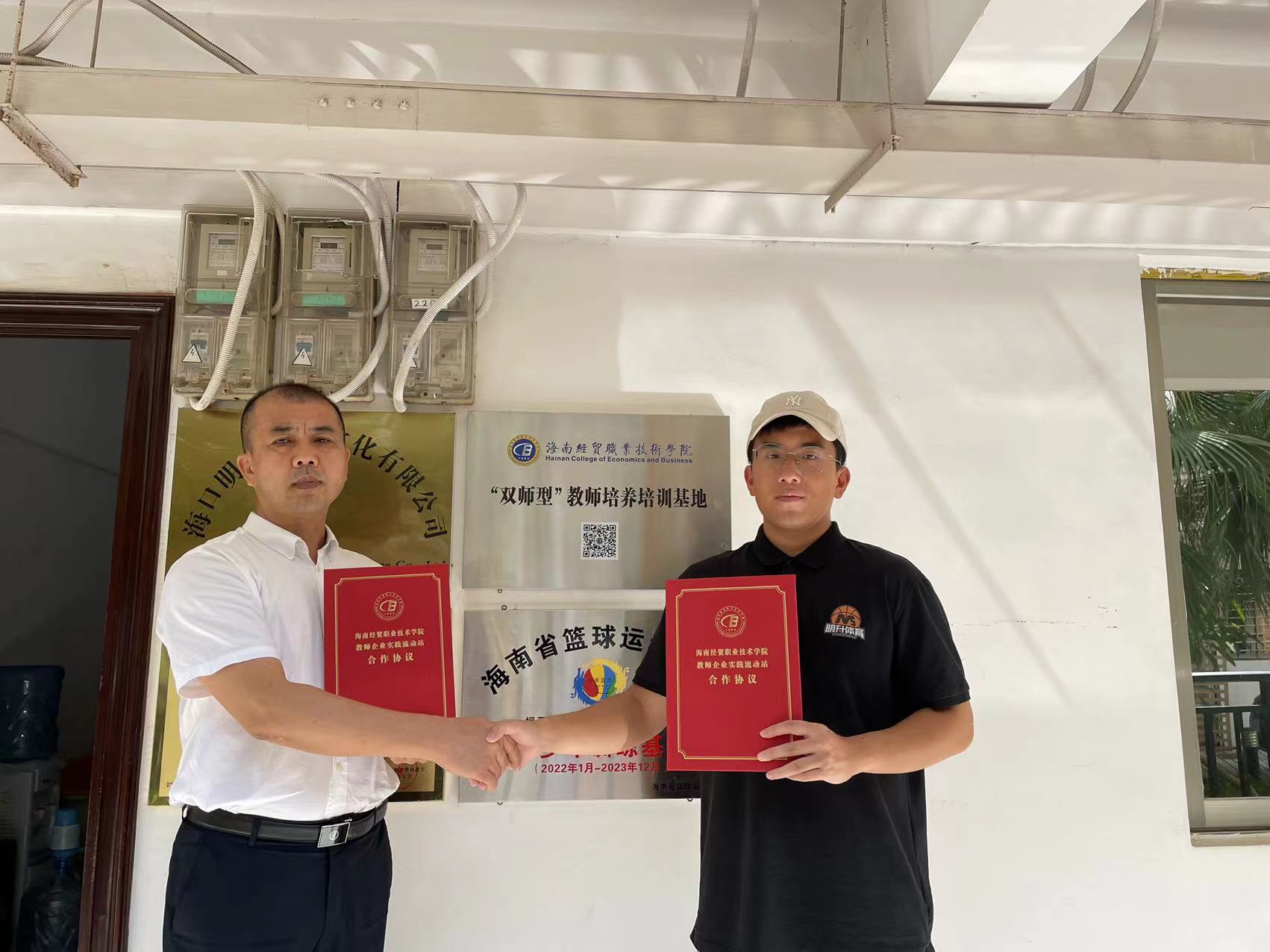为贯彻落实《williamhill官网教师企业实践基地建设三年行动计划(2021-2023)》和“访企拓岗”专项行动,进一步深化校企合作,落细落实教师企业实践基地建设和访企拓岗促就业工作,5月25日下午,英国威廉希尔公司经理胡友波带队先后赴海口明升体育文化有限公司和霍楠篮球训练基地走访洽谈、签署“双师型”教师培养培训基地建设协议并挂牌。